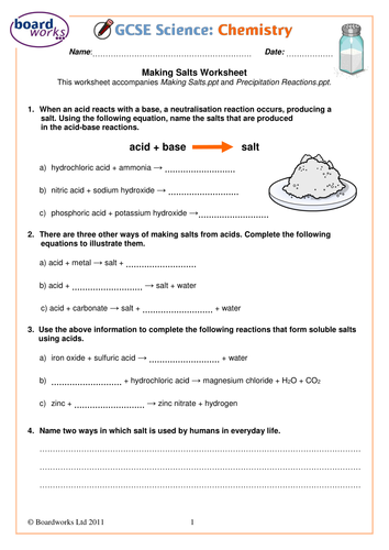 Making salts worksheet using word and symbol equations by ...