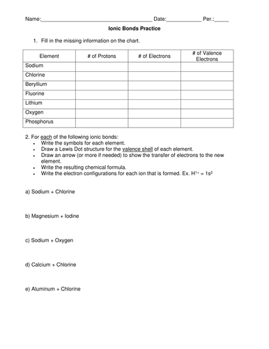 Ionic Bond Worksheet | Homeschooldressage.com (Brent Robertson)