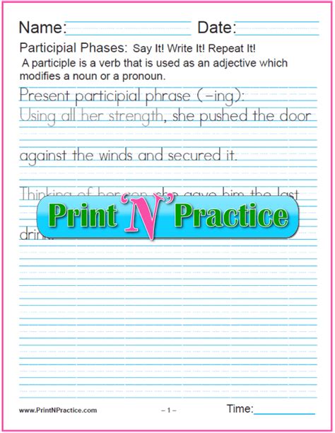 Infinitive Phrase Worksheet With Answers. Classic Infinitive Phrase Worksheet and Example. Also called an infinitival phrase and a to-infinitive phrase, it is a construction made up of the particle "to" and the base form of a verb, with or without modifiers, complements, and objects.