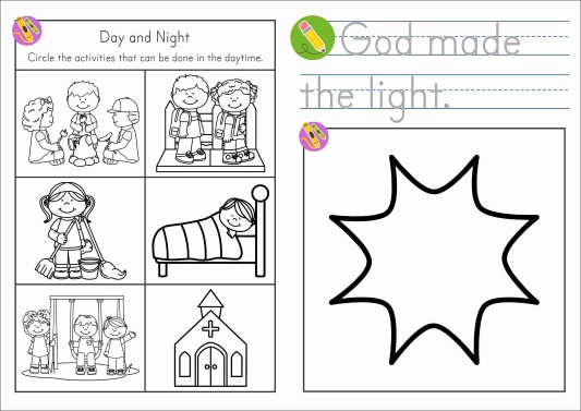 Free printables and activity pages for free. Students draw pictures of day and night and complete the sentences. You can freely print for your kids or students.