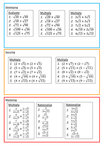 Surds Gcse Worksheet. A mixture of all four operations with surds. These review sheets are great to use in class or as a homework.