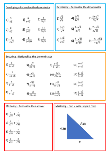 Rationalising the Denominator Worksheet | Teaching Resources