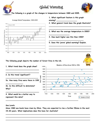 Worksheets On Global Warming. The worksheet brings a text about global warming with questions for discussion. Students first establish the reality of glo Global Warming Effects Name: Period: As the average global temperature continues to rise, the glaciers and ice caps will continue to melt, increasing the albedo in the arctic and from high (white) to low (black-open ocean).