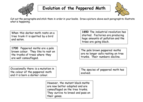 Once you find your worksheet, click on pop-out icon or print icon to worksheet to print or download. Students cut out the statements on the evolution of the peppered moth and then place them in the correct order. In the Peppered Moths activity, students first explore the life cycle of the peppered moth, continue on to the impact of pollution and Kettlewell's experiment.