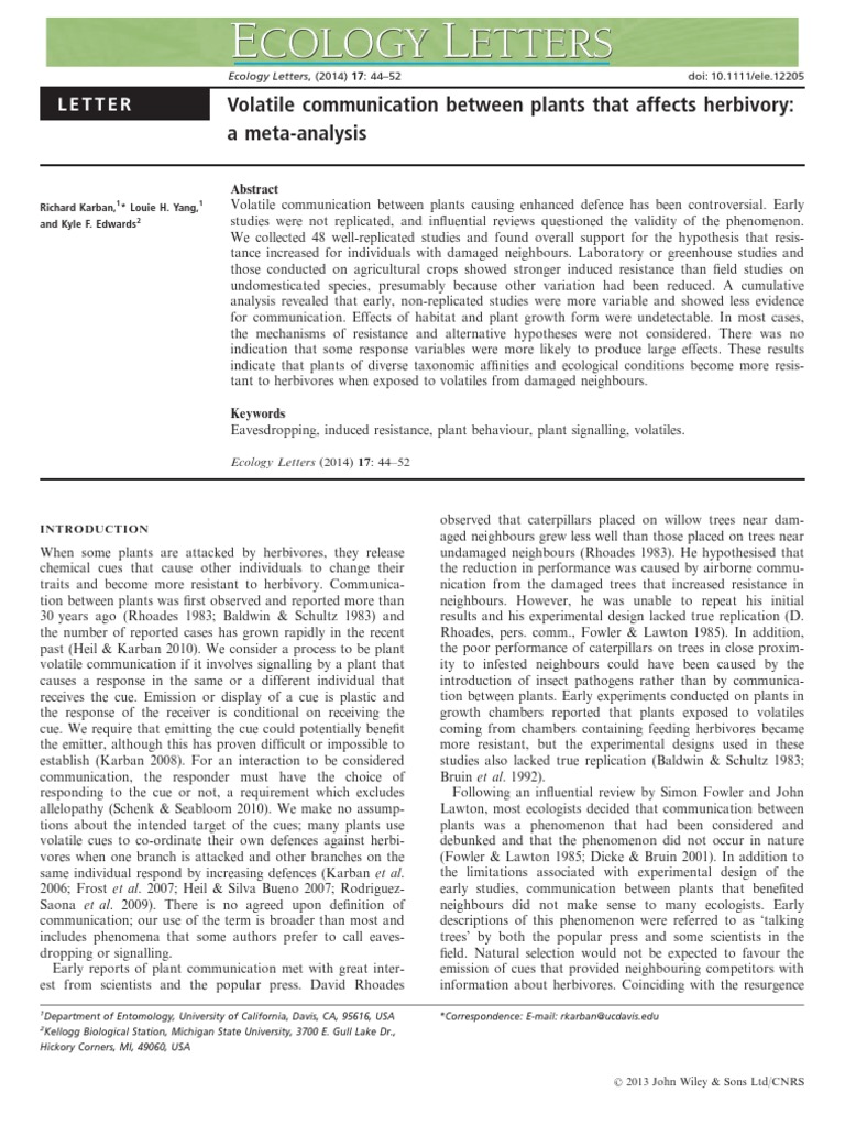 Karban Et Al-2014-Ecology Letters | Herbivore | Experiment