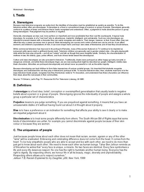 Some of the worksheets displayed are How biased are youteachers guide, Researching skills identifying bias, Activities for stereotyping, Stereotypes work, Stereotyping bias and prejudice in conict resolution, Stereotyping and bias, Bias and sampling work. Bias is when you have a personal opinion for or against something; oftentimes, this opinion on or favor for something is not based on reason or experience. An individual chooses to degrade another group, using specific and identifiable reasons.