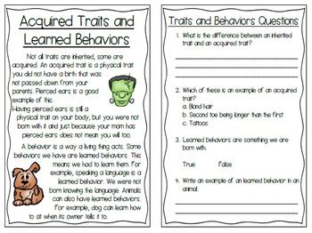 Acquired and Inherited Traits Packet *Quiz, Activity ...