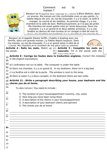 ma maison / ma chambre worksheet | Teaching Resources