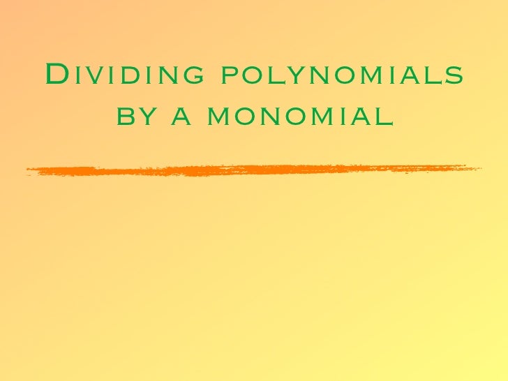 Make the two polynomials into one big polynomial by taking away the parenthesis. The method you use depends upon how If the divisor is a monomial (single-term polynomial), either a variable with a coefficient, or a constant (a number without a variable following it), you can probably. You are now ready to proceed to the Homework Assignment.