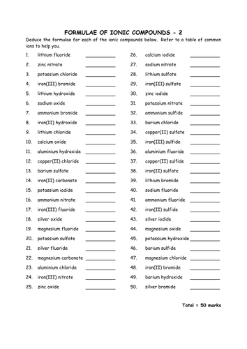 The procedure that can be followed when confronted with the name of a compound and you wish to write its formula is as You ask yourself do the total positive charge and total negative charge add up to zero. This activity is to check that students. You just have to supply the correct chemical formula for each acid.